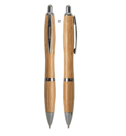 Penna a scatto in bambù con clip in metallo e particolari cromati